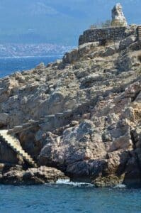On the southeastern edge of the village, you’ll find a hidden beach. To get there, you’ll need to walk down some stairs, but the effort is well worth it. It’s a quiet, secluded spot, perfect for enjoying a sunny day without the crowds.